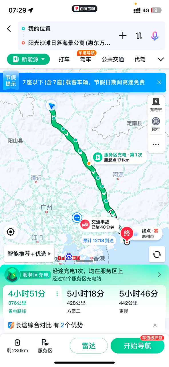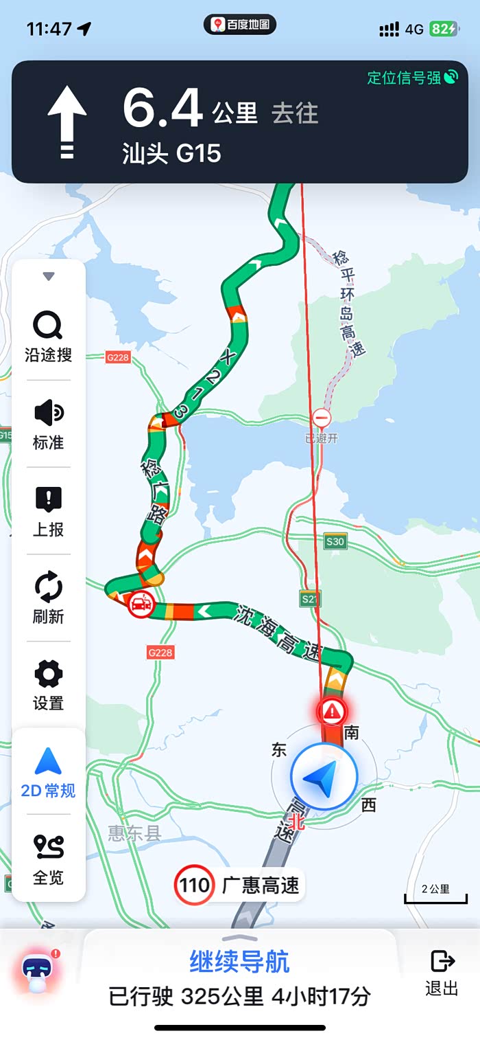 导航显示抵达目的地需要四到五个小时,但是我们没有想到的是中途出现了大堵车,在接近惠州的时候堵了有三四个小时,如果像第一天来的时候4:00出发,那么堵车就碰不到了,所以说还是要早点出门比较好。