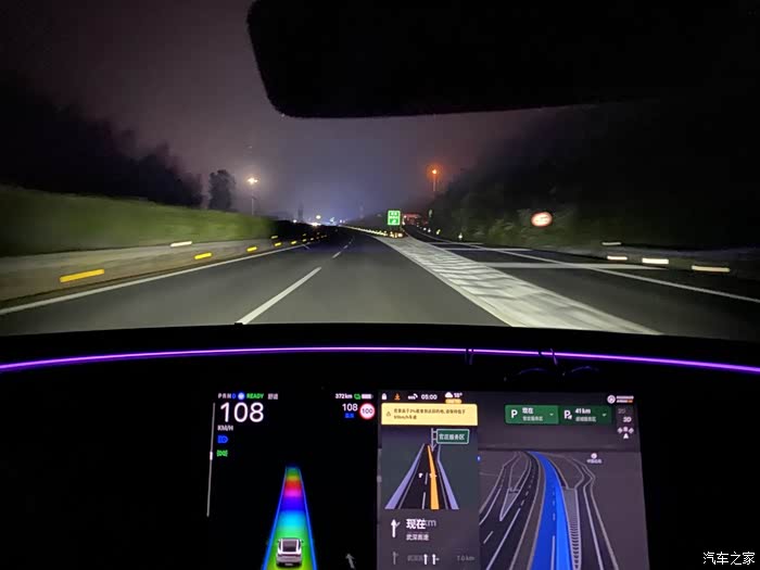 早起的鸟儿就是爽,五一出行高峰期,避免堵车最好的办法那就是凌晨出发了!这时候的高速上是真的一点车也没有啊,一条马路都是我的,把辅助驾驶打开,双手紧握方向盘,这一刻上了高速才知道特斯拉的AP是真的很香,没有频繁的修正方向盘,车道居中保持,一切都是这么的丝滑!