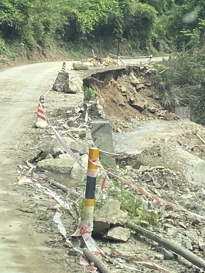 不知道的还以为到了无人区,前面的路况给我吓了一跳……右边的路基基本悬空了啊,咱这2吨多的车能过吗?犹豫了一下,让车上的家人下车,我自己沿着山体一侧缓慢过去了,现在想想都后怕啊,果然平安才是最重要的。