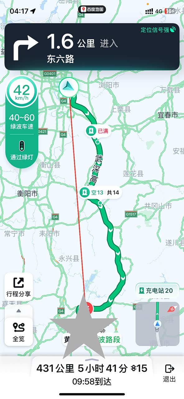 一路上风驰电掣,贴着限速跑了两个小时,基本都是限速120 100左右,行驶了200公里电号在15左右,准备今天的第一次补能了!