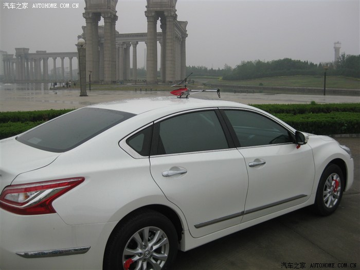 4、用车:5月23好提的车,到现在一个多月了,开了2200公里,目前没发现任何毛病。舒适性(100分),没的说,超级棒,无级变速箱,加速过程没有任何冲击和顿挫,隔音效果非常好,音响效果对的起17.78万的车价,座椅非常软,坐上去深深的陷进去,不愧为“移动的沙发”。动力(75分),选车时考虑到上下班的路程很远,再加上我和爱人都是工薪阶层,所以没敢上2.5的,动力只能说够用了,开空调后就更显无力了。S档目前还没试过,考虑到还在磨合期。油耗(100分),非常满意,2.0的排量,1.46吨的车身自重,从提车到现在,共2200公里,主要是平时上下班开,在这2200公里中,约80%的路程都是坐满了一车人,约20%的行车时间是开着空调,80%是郊区道路,20是城区道路,电脑显示的累计平均油耗是6.9L,我实际测量值是7.9L,连同事们都为之惊讶!空间(90分),个人认为天籁的空间在B级车里算中上等,我181cm的身高调整好驾驶位后,再坐到后排,腿部空间、头部空间还是很富裕。性价比(95分),裸车价格17.78,包括白色加价2000块,除了定速巡航、座椅加热、导航这三项没有,其他的配置一应俱全,再加上车子的质量、舒适性、油耗等,个人认为性价比还是蛮高的!