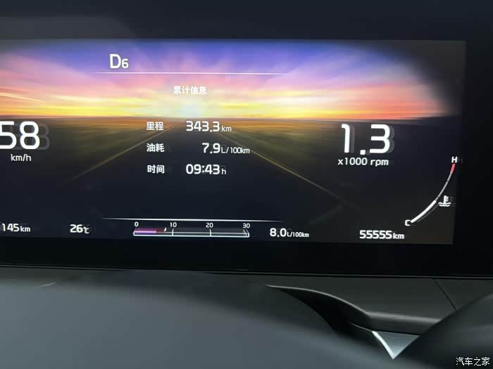油耗:目前行驶55555 我km,表显综合油耗7.7L/100km,市区最低开到7.7L。