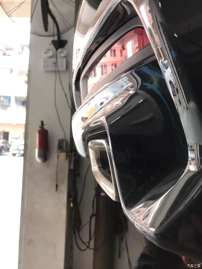 换了黑中网、加装前铲、贴黑镀铬条、后刹车加大碟、改装排气。