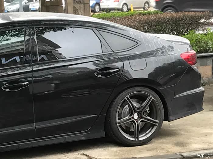 再过了一段时间,把尾灯贴了高透黑,窗边和手把也一起贴黑了,最重要还是把标字抠掉,清爽。