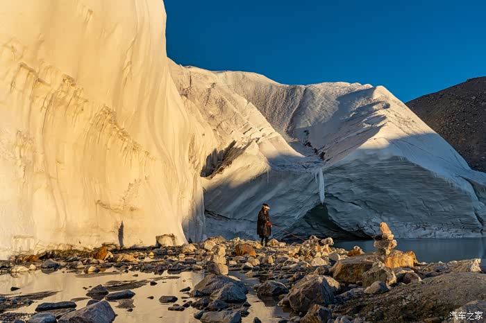 我们在慕士塔格峰下住了一晚,总结出来进冰川的最佳时间是:下午4—6点到冰川公园大门,然后走个小土路到冰川脚下的停车区,爬个小半个小时的栈道,就到冰川啦~因为太阳是从慕士塔格峰背后升起的,所以你上午来,人少是少,到那时冰川逆光还反光,根本没法拍照!下午来光线比较好,温度也没有那么低,六点的样子到冰川湖那里就算等个日落也不会很久。可是如果你到大门已经7点多,那就不要进来了,等你爬到冰川湖,太阳应该也落山了,气温骤降,黑乎乎的也没啥可拍的。