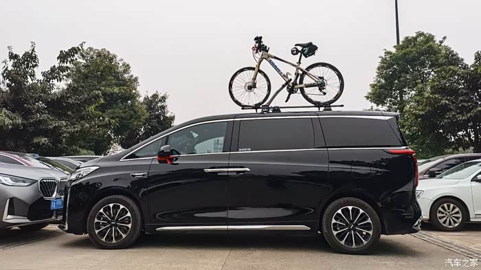 高山车顶很宽敞,感觉能同时装一个车顶行李箱和两个自行车架。