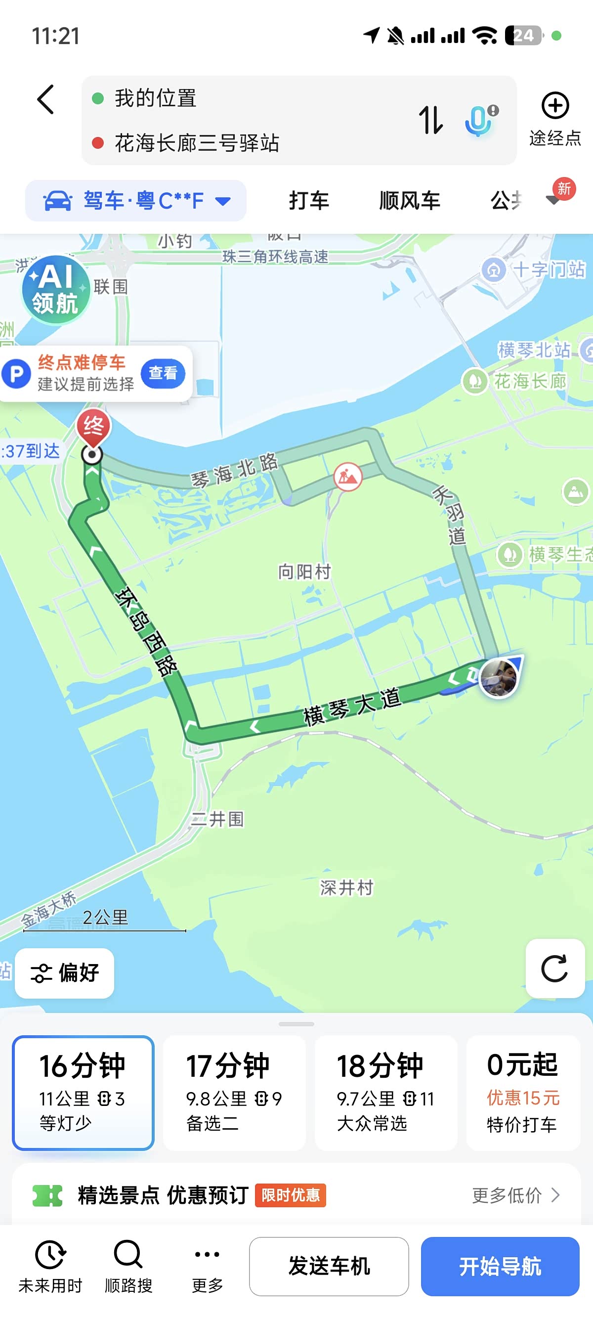 花海三号驿站距离我居住的地方只有11公里,全程我只用了16分钟便可以到达目的地,珠海横琴三号花海驿站位于横琴花海长廊,是一个集休闲、娱乐、运动为一体的综合性驿站。该地区提供干净水源、洗手间等基础设施,设有营位租赁区,也预留了自带装备区域。也是横琴露营基地之一,每到周末黄金时期,会有不少香港澳门游客过来此地露营烧烤或者野炊。驿站内设有自动贩卖机,可为游客提供基本的饮品和食品。