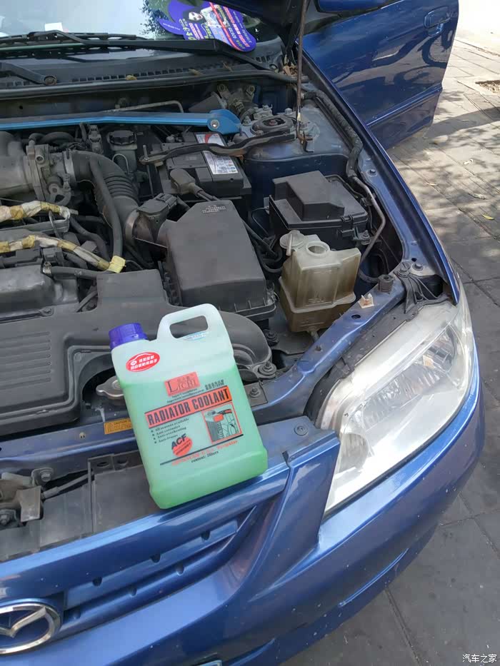 因为接线要连接电瓶,开了机盖才发现前两天刚加过凉开水的水箱副水壶干了,哇吓坏人,也许是水箱宝与凉开水混合加一起挥发特别快,好在错有错着,当场在此店购买水箱宝20元一瓶加入之