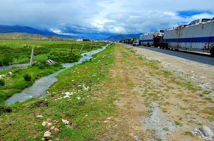 在这里开始堵车了,而且一堵车就是一个多小时。真应该向那些建设青藏公路、铁路的英雄们致敬,我们开着车还高反缺氧,想想,当年他们是怎样的艰辛,为了这一条雪域之路,把生命都留在了这里。🌸🌸🌸