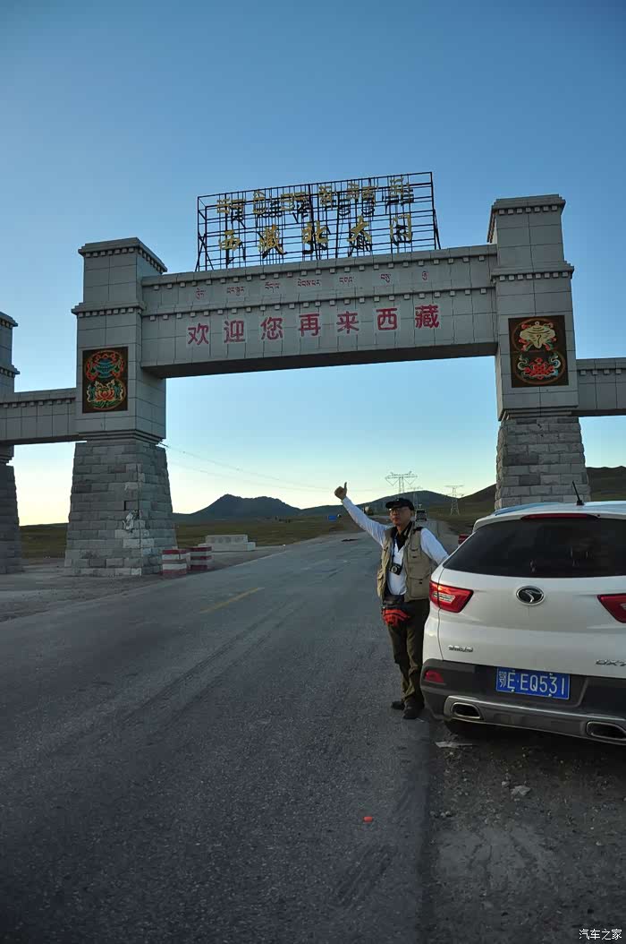 这里一个很大的牌坊,上书“西藏北大门”几个字。要不是有这块“西藏欢迎您”的牌坊,都不知道已经要离开西藏的地界了。 心中突然恋恋不舍,也忽感丝丝欣慰,要走出西藏了。