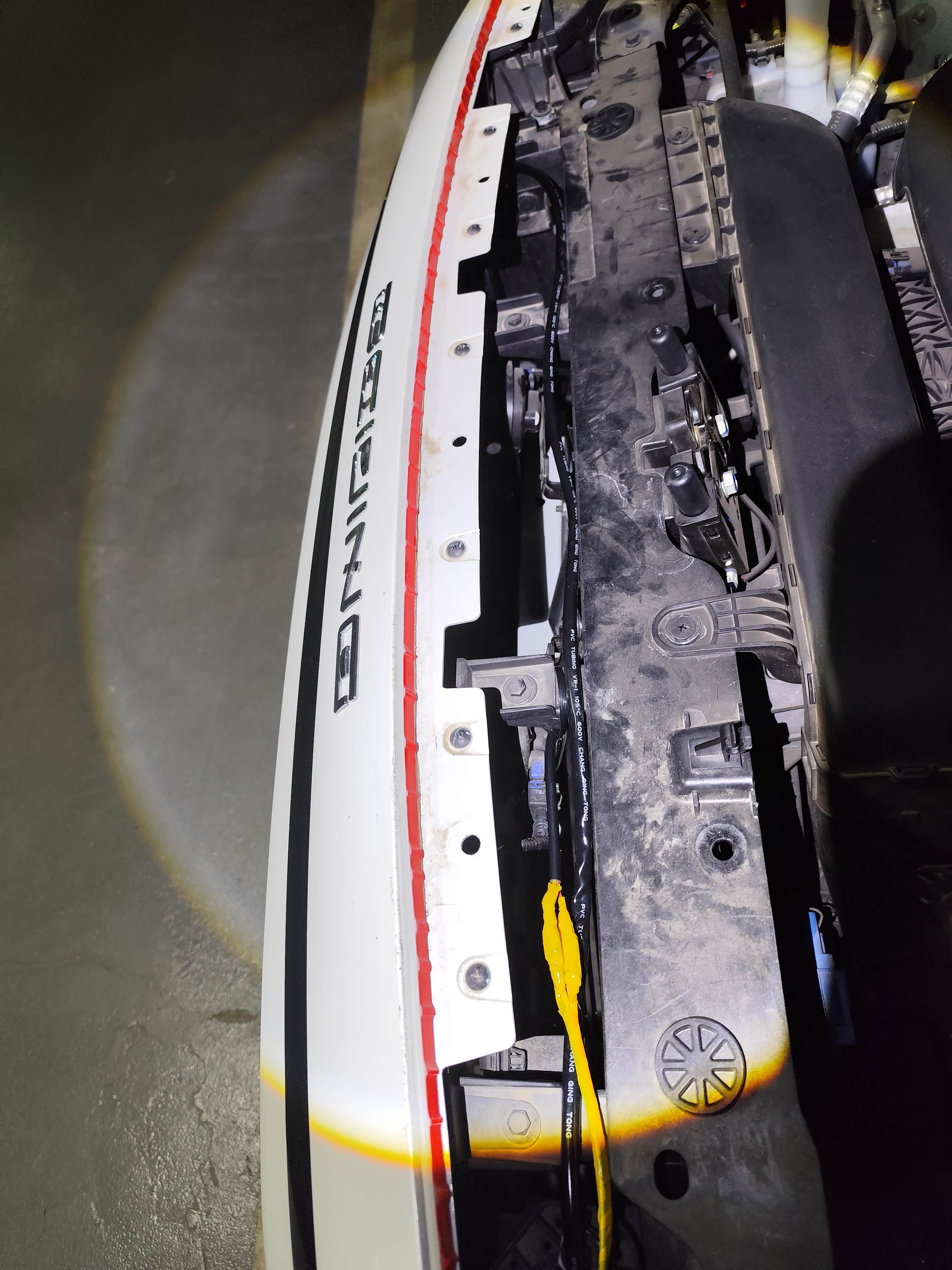 根据射灯尺寸,我定制了一对不锈钢支架,用螺栓牢固固定在中网后方横梁上。这一步骤需要精确测量,确保射灯安装后角度正确,既不能太高造成眩光,也不能太低影响照明效果。
