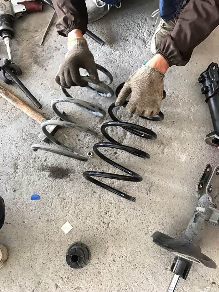 再来说说不足,有车友给我说减震太软 满载减震容易触底,这个我暂时没发现 不过感觉车身比以前更晃了 一般的沥青路就能感受到 也可能是路面不平整吧 高速路面还没时间去试 尤其是乡村水泥路 本来就很不平整,车开上去很摇晃,可能是减震阻尼太小 弹簧太硬 的原因 说实话 折腾成这样也不后悔 毕竟有改善!不过我觉得原减震换软弹簧可能也有效果 不过不想折腾了