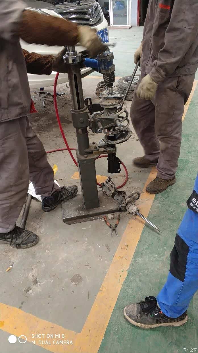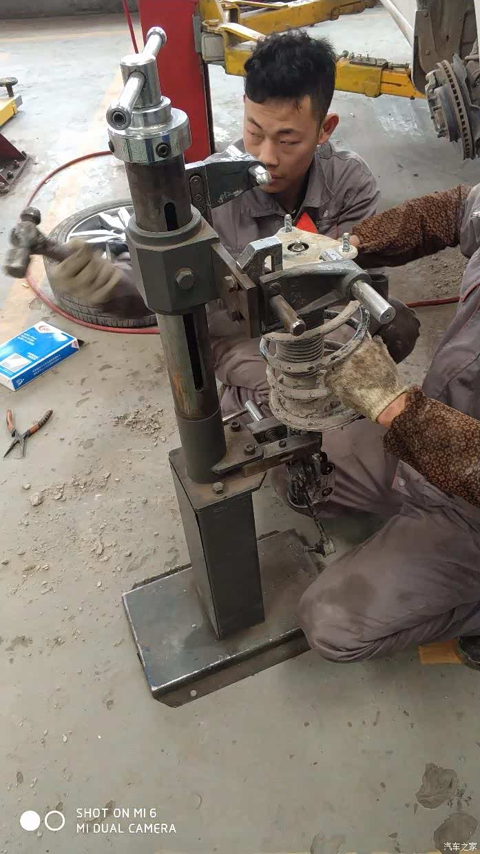 等待的日子是最难熬的,等了几天总于到货,马上开车杀到修理厂!全车减震和定位一共报价260,有点小贵!就是自己没有压弹簧的工具,不然自己也可以搞定,只是力气活,又不需要技术!算了,根据以往坛友的工价,也还算便宜!