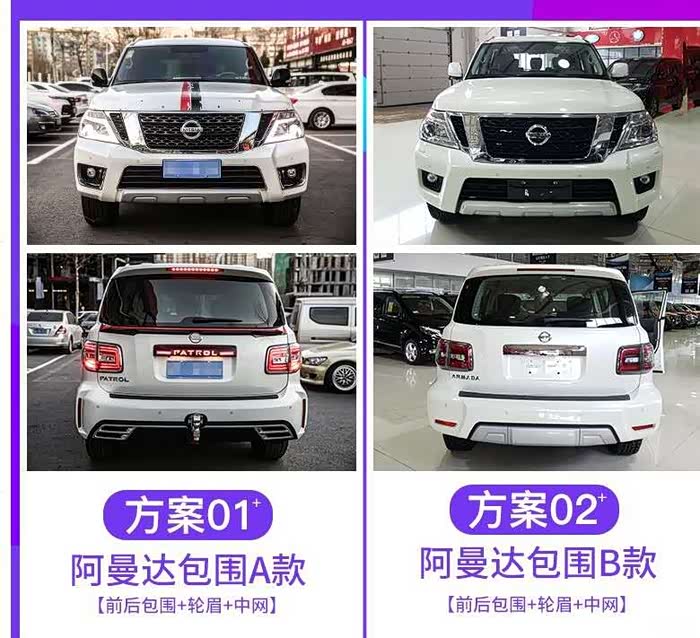对于途乐原车,外观上我最不满意的就是前杠包围,感觉一下子拉低了整体的美观度,别的我都能接受,所以要换的重点就是前杠包围,考虑到前后一致性,换全套的方案也能接受。目前市场上主流有两种: 铂金版和阿曼达。(Nismo,银爵,领主实在不在我的审美范围之内,所以压根不考虑。)
