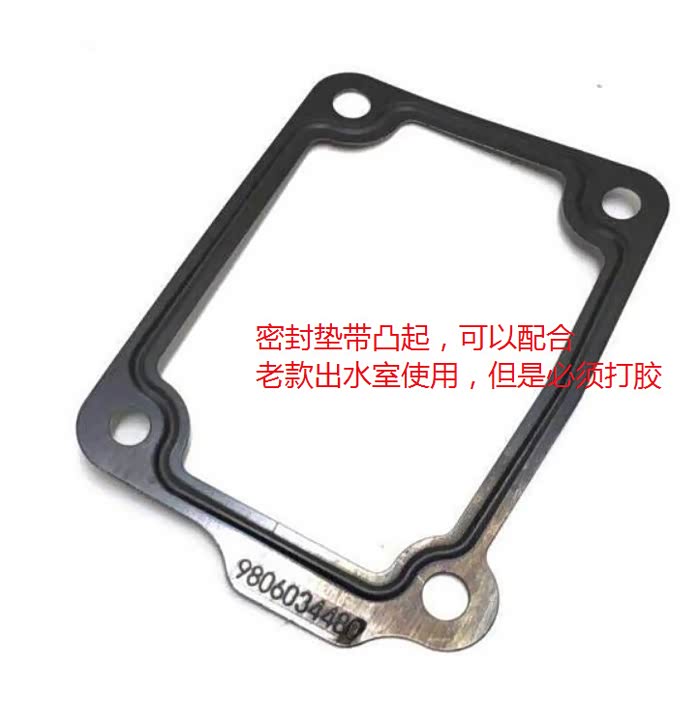 新的密封垫,密封垫是金属材质(类似铝合金),带凸起,可以配合老款出水室使用,但是必须打胶,如果用在新的出水室上,不建议打胶。