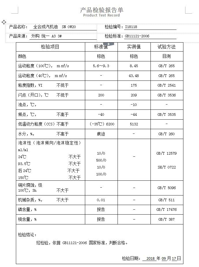 从浊点来看,京保养所采用的基础油还是相对不错的,比自家的A3好很多,就是不知道添加剂质量如何。