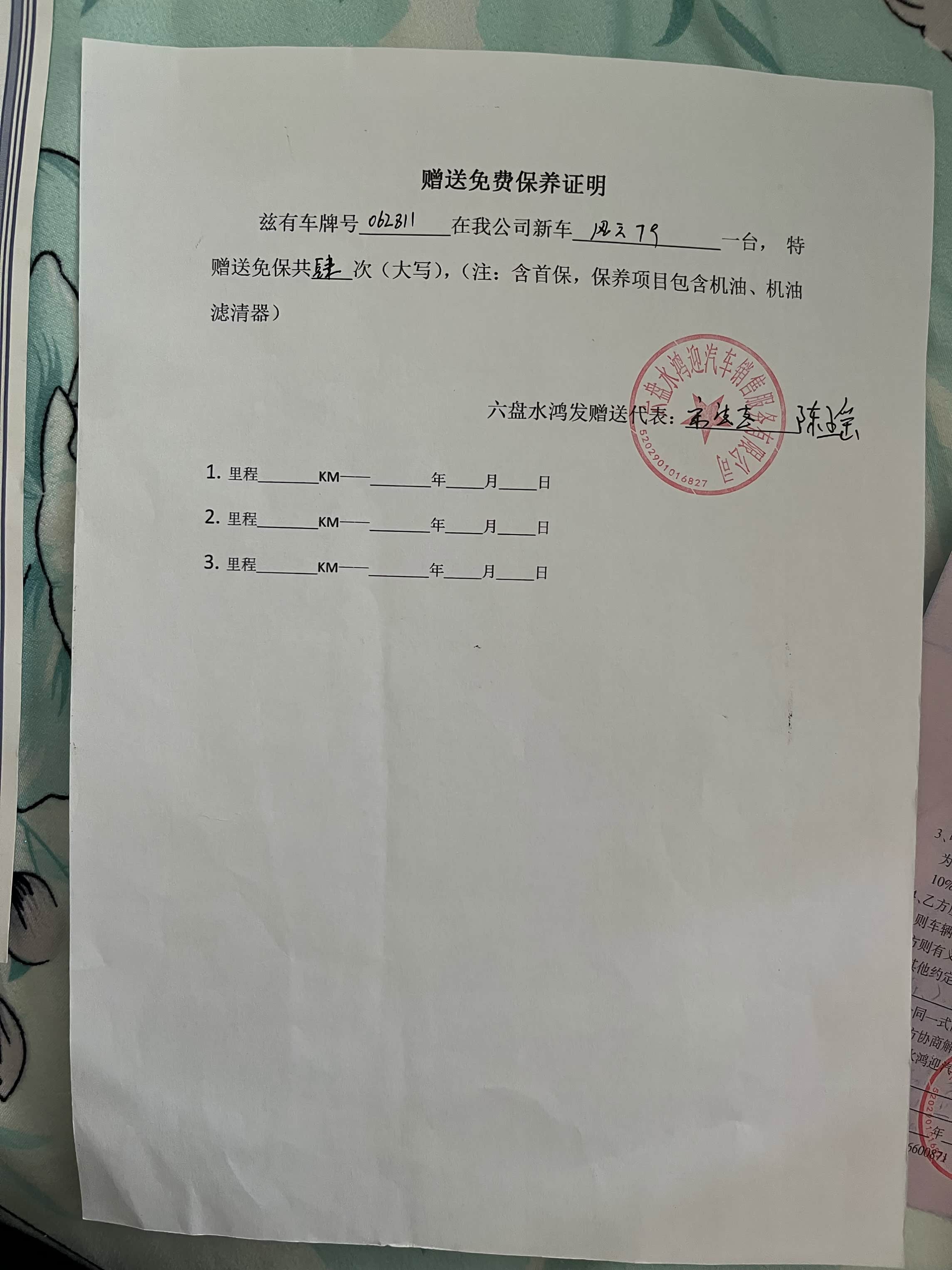 自己上牌、厂家赠送充电桩(包安装),4次基础保养(含首保)随车充,脚垫,车窗膜,充气床,放电枪,吊床等等…