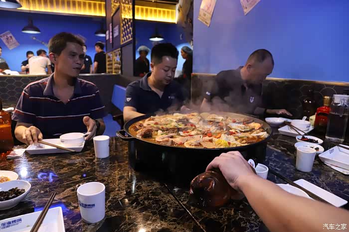 晚餐我们来到10多公里外的主题餐厅,非常有特色,一口大锅你想吃什么里面都有,包括大虾 ,老牛,老鱼都一锅炖了。在南京有想吃的可以联系我,我坐高铁去再吃一顿。
