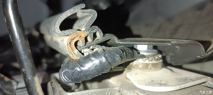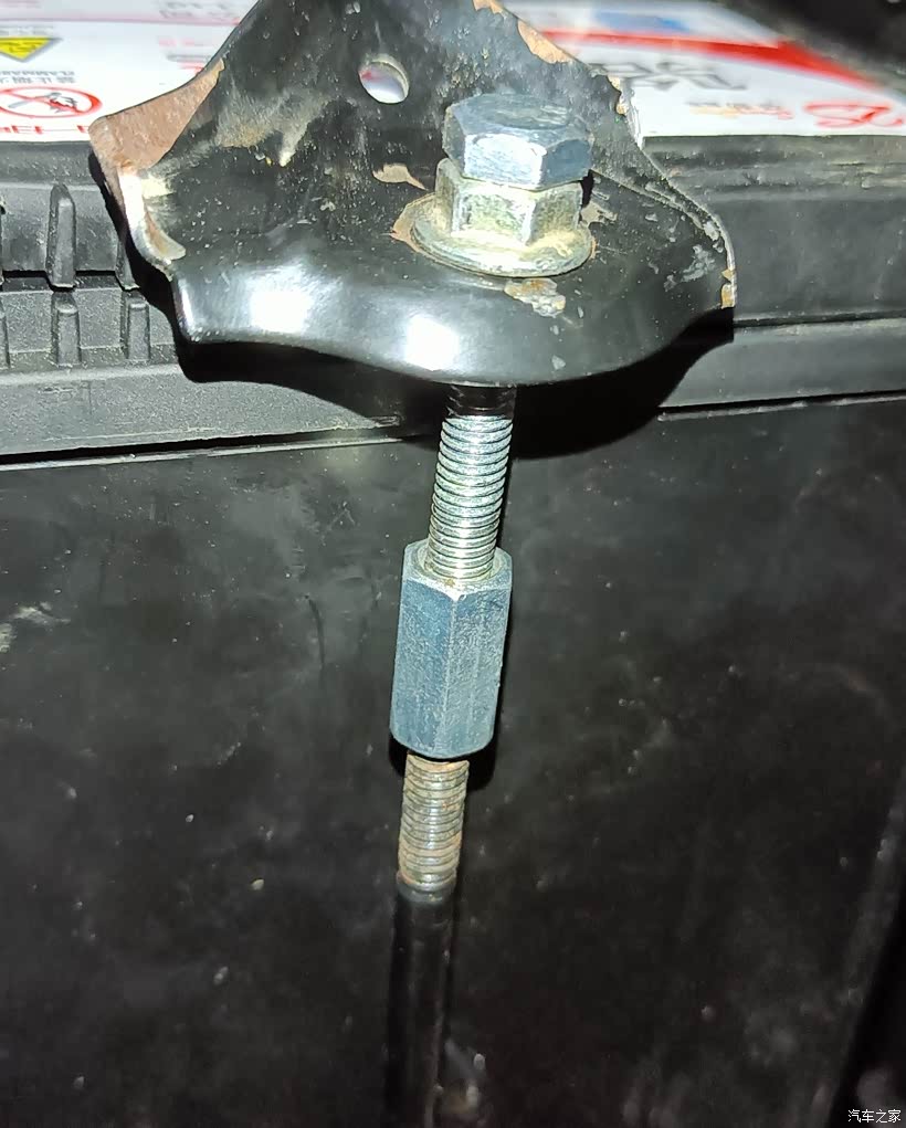 因为新电瓶高出3公分多点,会造成原有的固定拉杆不够长,所以需要使用连接母和螺栓将其延长。