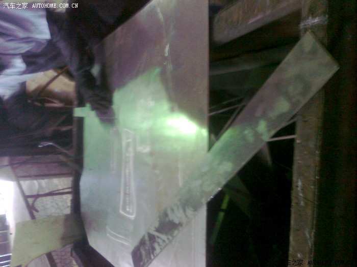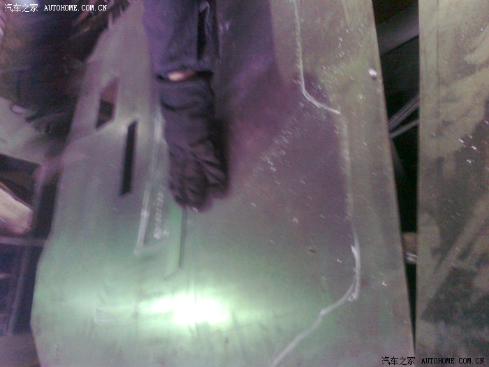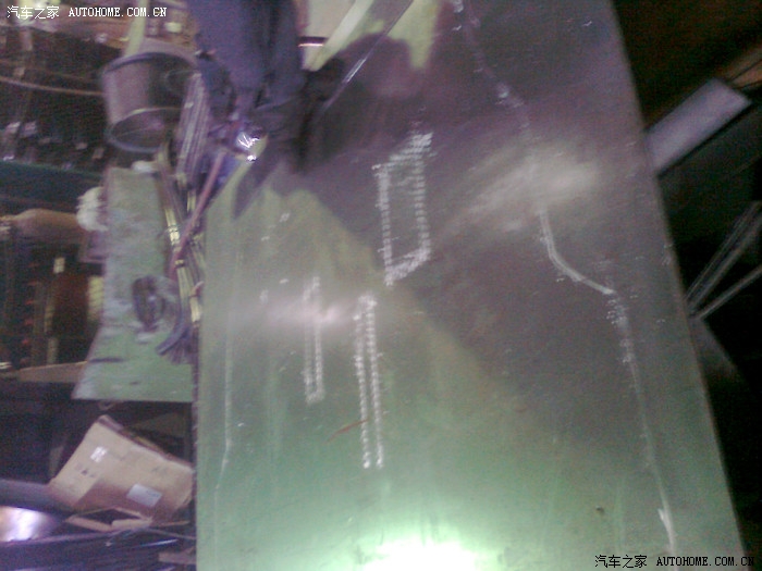 模子做好后用的钢板,描线,变速箱放油口和机油口都留下了,就是这个上面的印子,我还把发动机排气管那也放出来了,防止热散发不出去,其中还另加了几天进气口~!
