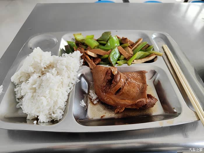 前后忙了有2个小时吧,眼看到中午饭点了,4S负责接待的大妹子给领了份工作餐,鸭腿炖滴还行