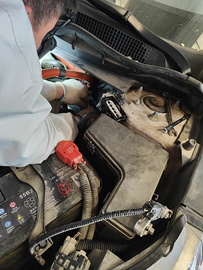 打开机盖,制动踏板模拟器在这个位置,它右边就是刹车泵。