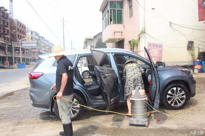 正好从老家回家了一趟,车子有点脏了,看到路边的洗车店了