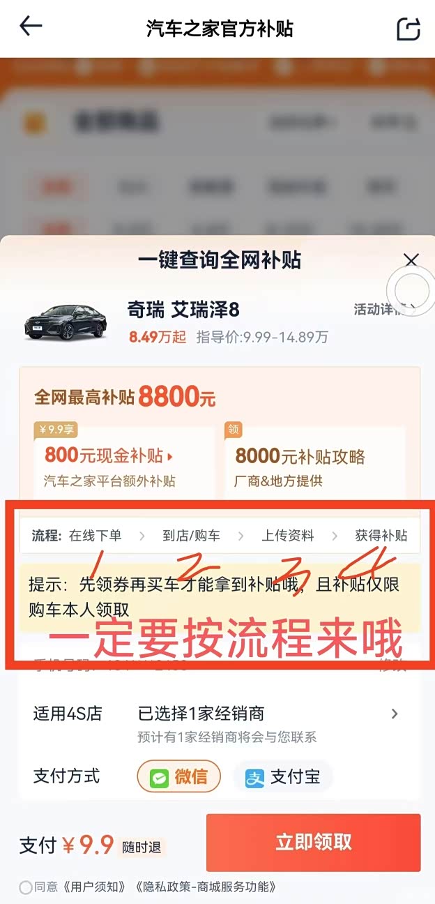 3)平台加码:汽车之家官方再补800元(操作见下文)