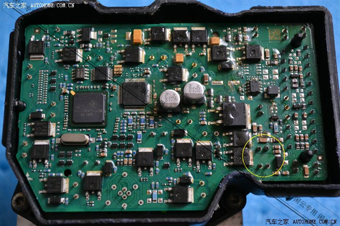 所谓的换主板,只是把主板上电机的二个接点补焊了一下,也就是黄圈中的4个点