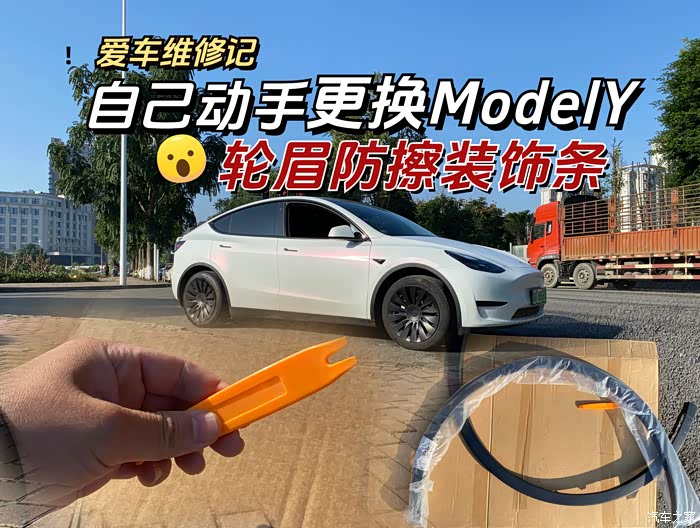 副厂件也将了!自己动手更换ModelY轮眉防擦装饰条#爱车维修记#