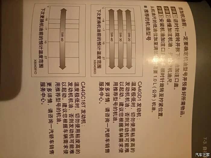 我看写得很清楚啊,CA4GD1使用020,530,540,CA4GC18T使用540,一般厂家推荐的黏度都兼顾了保护和燃油经济型,就是最低使用黏度,往上肯定没问题。比如德系推荐530,那用520,或者020恐怕还是不妥吧