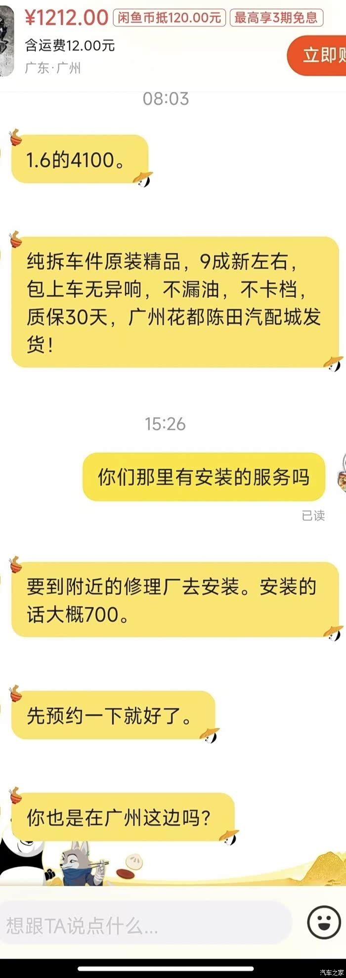 咸鱼上找了一家搞变速箱的,问了一下拆车的是4100,旧的置换700 安装大概也是700,质保一个月