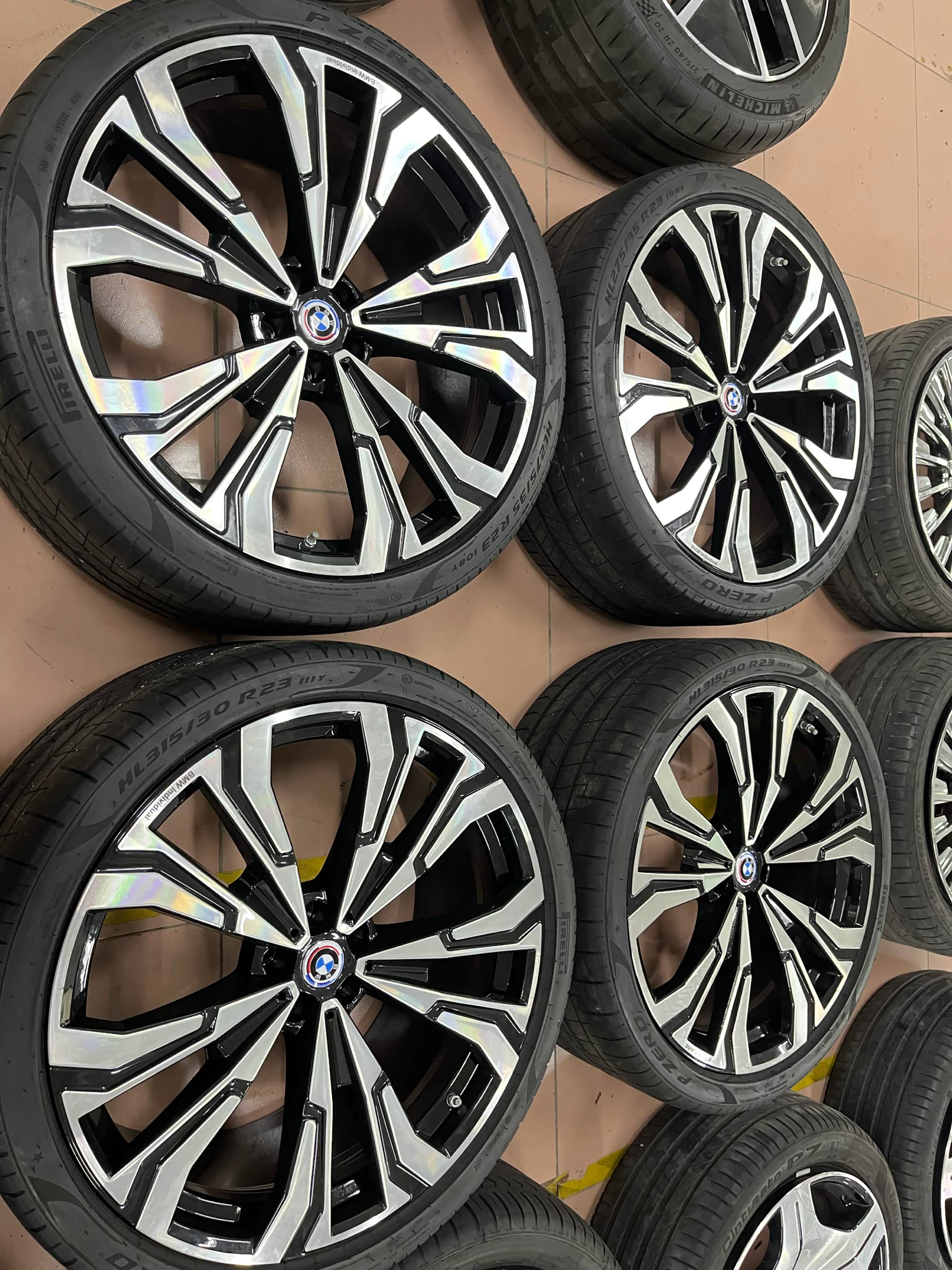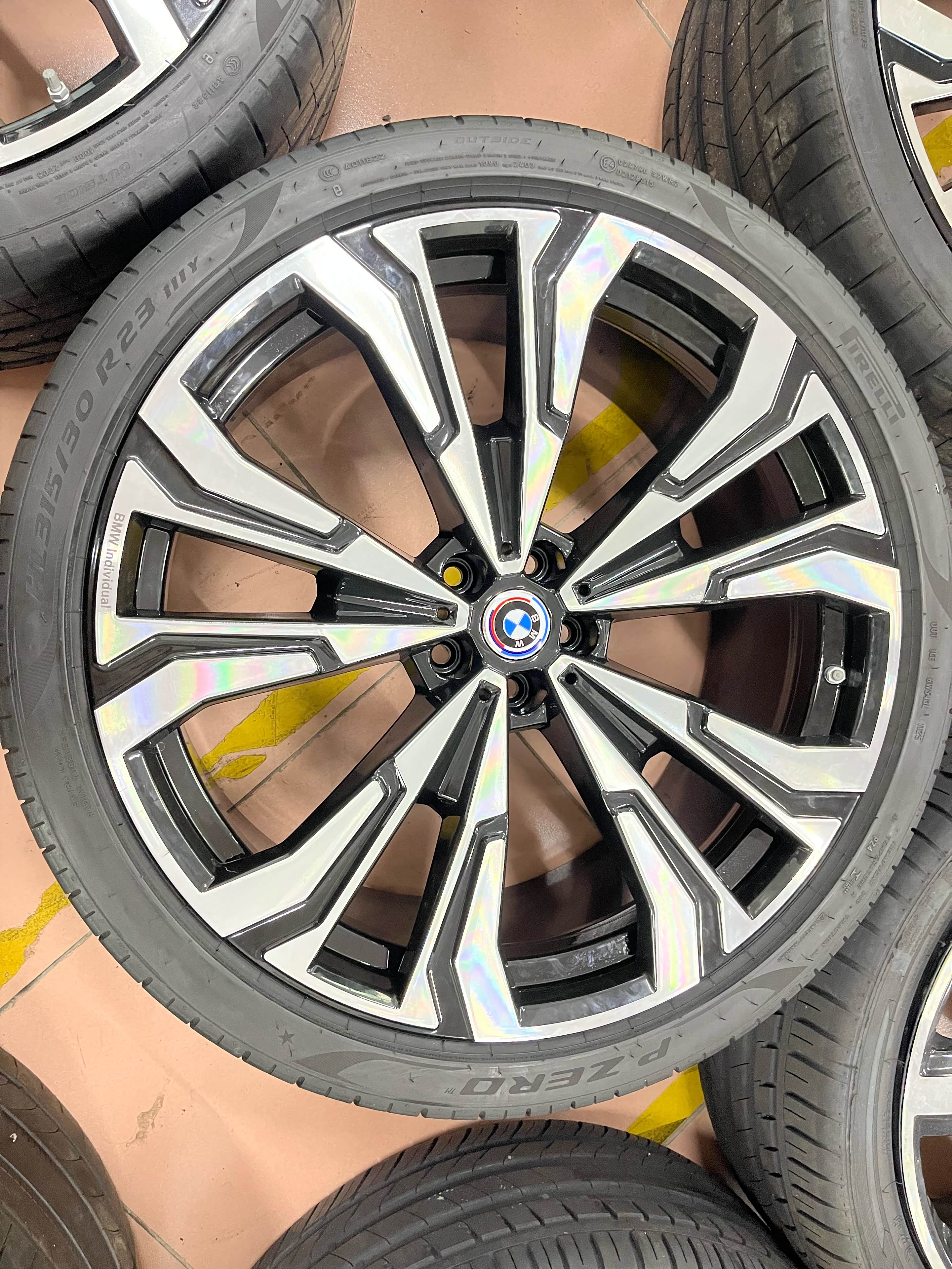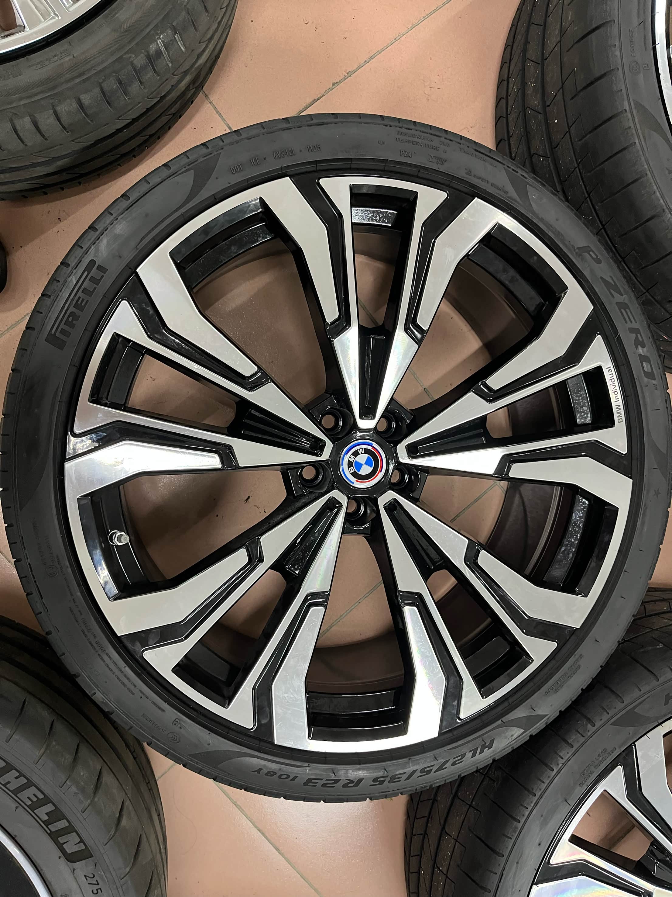 宝马X7原厂23寸轮毂带胎一套,适配X5/X6/X7等车型。黑色多幅设计。配套倍耐力P ZERO轮胎,前轮275/35R23,后轮315/30R23。轮毂成色新,无磕碰划痕,轮胎花纹完整。支持验货,广东深圳周边可到店安装升级置换,外地包邮!