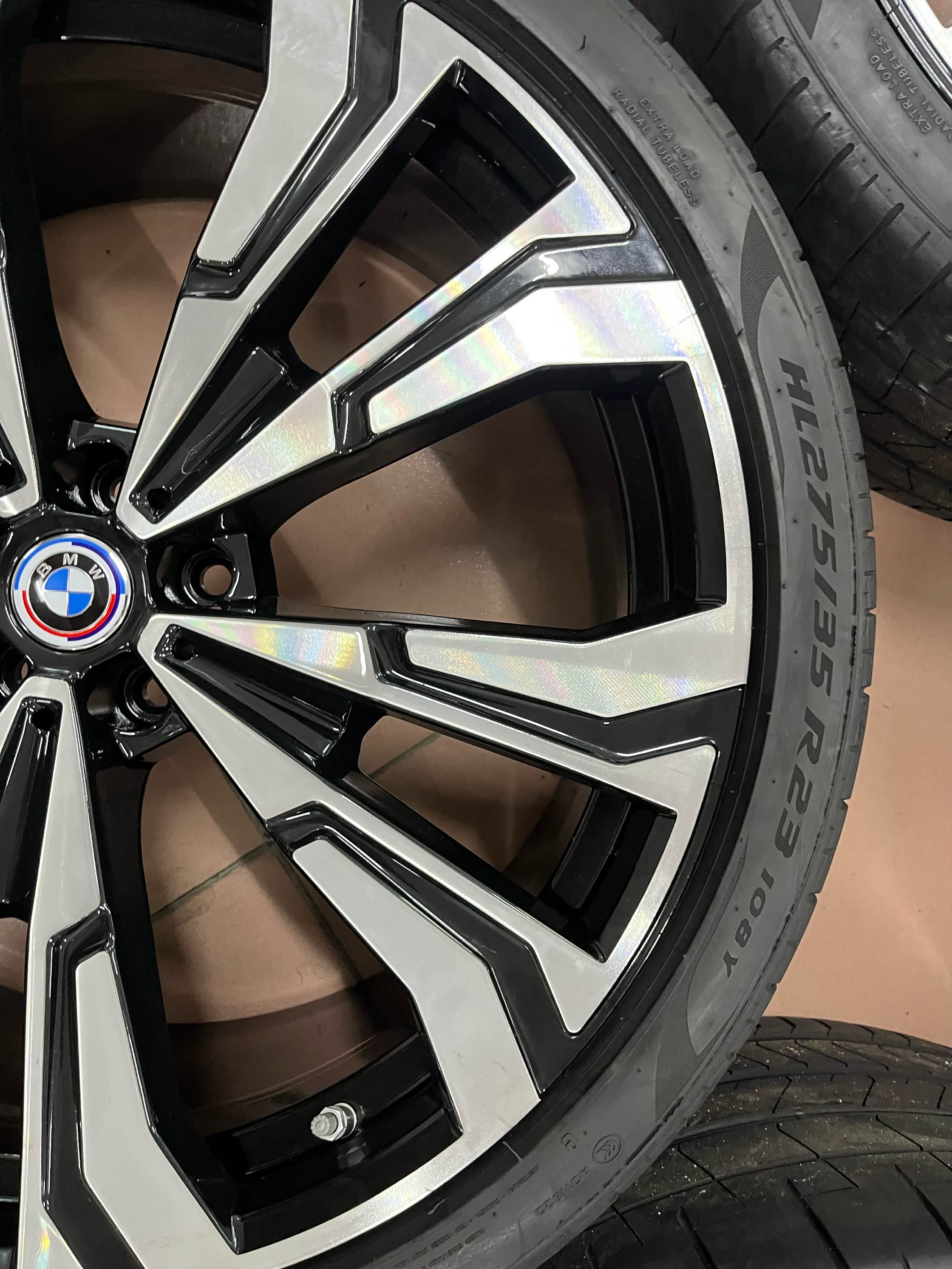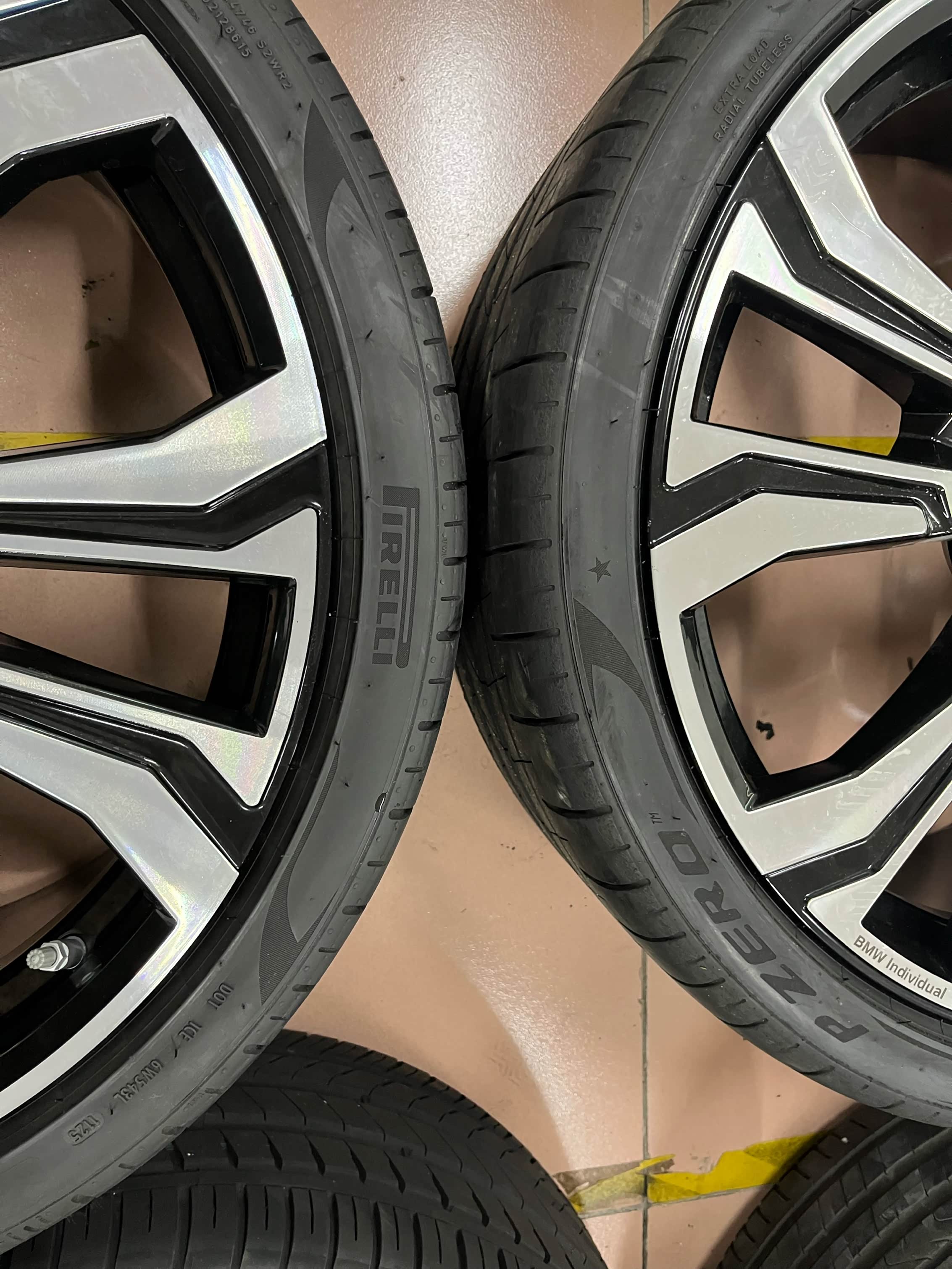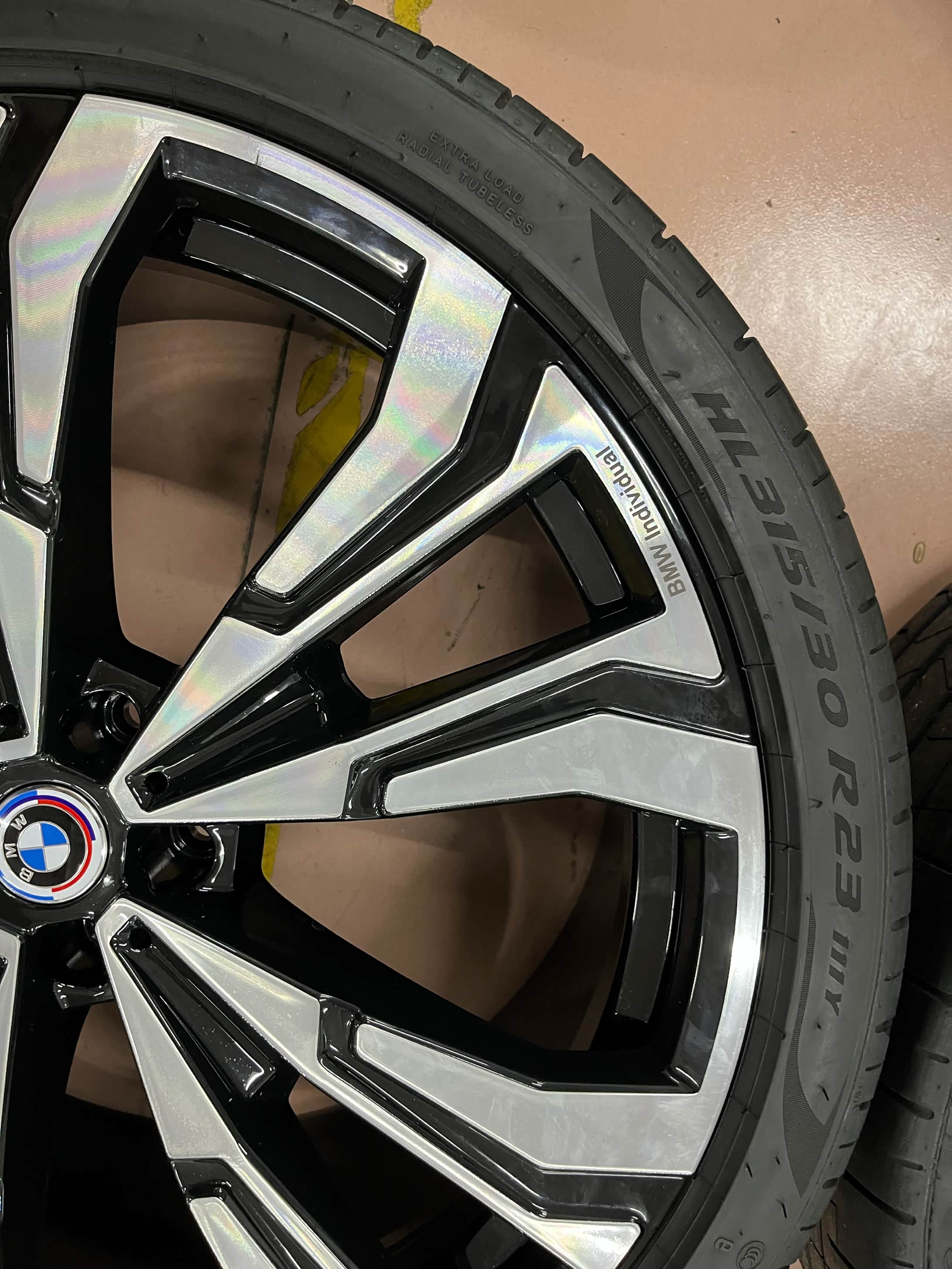 宝马X7原厂23寸轮毂带胎一套,适配X5/X6/X7等车型。黑色多幅设计。配套倍耐力P ZERO轮胎,前轮275/35R23,后轮315/30R23。轮毂成色新,无磕碰划痕,轮胎花纹完整。支持验货,广东深圳周边可到店安装升级置换,外地包邮!
