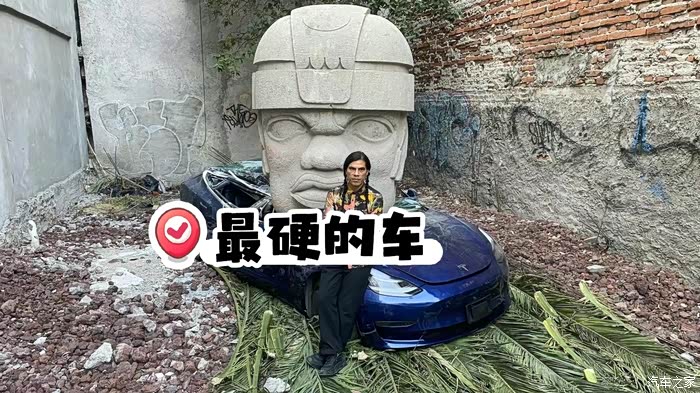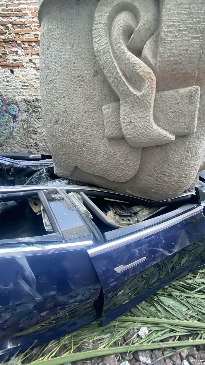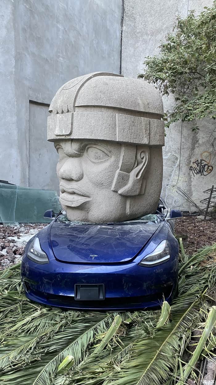 墨西哥,一个9 吨的石头掉到了model3上,驾驶员毫发未伤