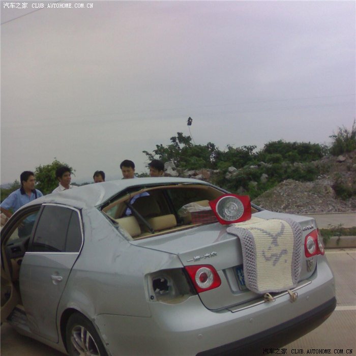 这里公布事故原因:当天一大早我们就出去玩了,爬山,郊游。当天的时间排得满满的,担心回家太晚,中午没得休息就赶回家了,回家的路程粗略算了一下~大约有200多公里。一直跑高速,就是为了省时间。实话说吧~这一路过来我都是强打精神开的,如果中间停车洗一下脸就好了~(后悔)出了高速高度绷紧的神经得到放松,但没有及时调整速度,一直按高速公路的速度。离县城3公里的地方(也就是出事地点)忽然感觉右边山坡上有一团黑影往下窜,当时情况来得忽然,再加上精神不太集中,距离太近,再加上惊吓。之后我所有的动作全是条件反射的避让。这就是我没有任何刹车动作的原因吧~如果出高速后能够及时把速度调整过来,保持50-60的速度,依照速腾的稳定性~我应该可以躲过~但话说回来~过份的自信也不是好事~归根结底,我算是疲劳驾驶,这也是事故的主要原因~我不怪水牛,只怪自已疲劳驾驶!我是以身试法了~各位车主一定要吸取教训,千万别疲劳驾驶。感觉精神不太集中时一定要下车走走或洗个脸,车上常备几瓶水,能解渴又能提神,我说的就是这些,我接受任何批评和砖头!
