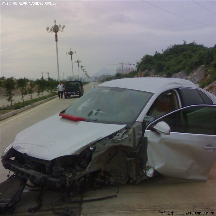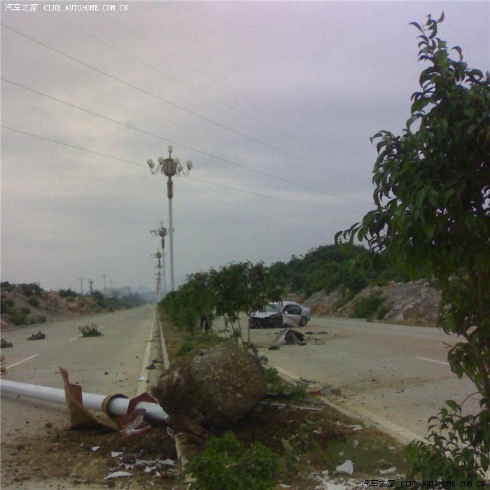 被果友看出来了~车子蛮惨的,就是在拐弯撞上的~命也大,如果不撞上路灯,我可能飞到对面的石头山上了~后果不敢想像.110公里/H是什么概念,想起还后怕