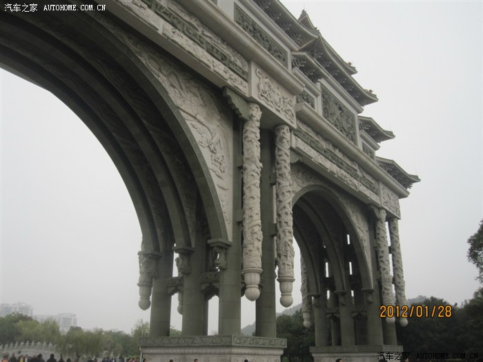顺峰山公园牌坊工程在牌坊上悬挂重达25吨的石柱更是在牌坊建设史中少有。