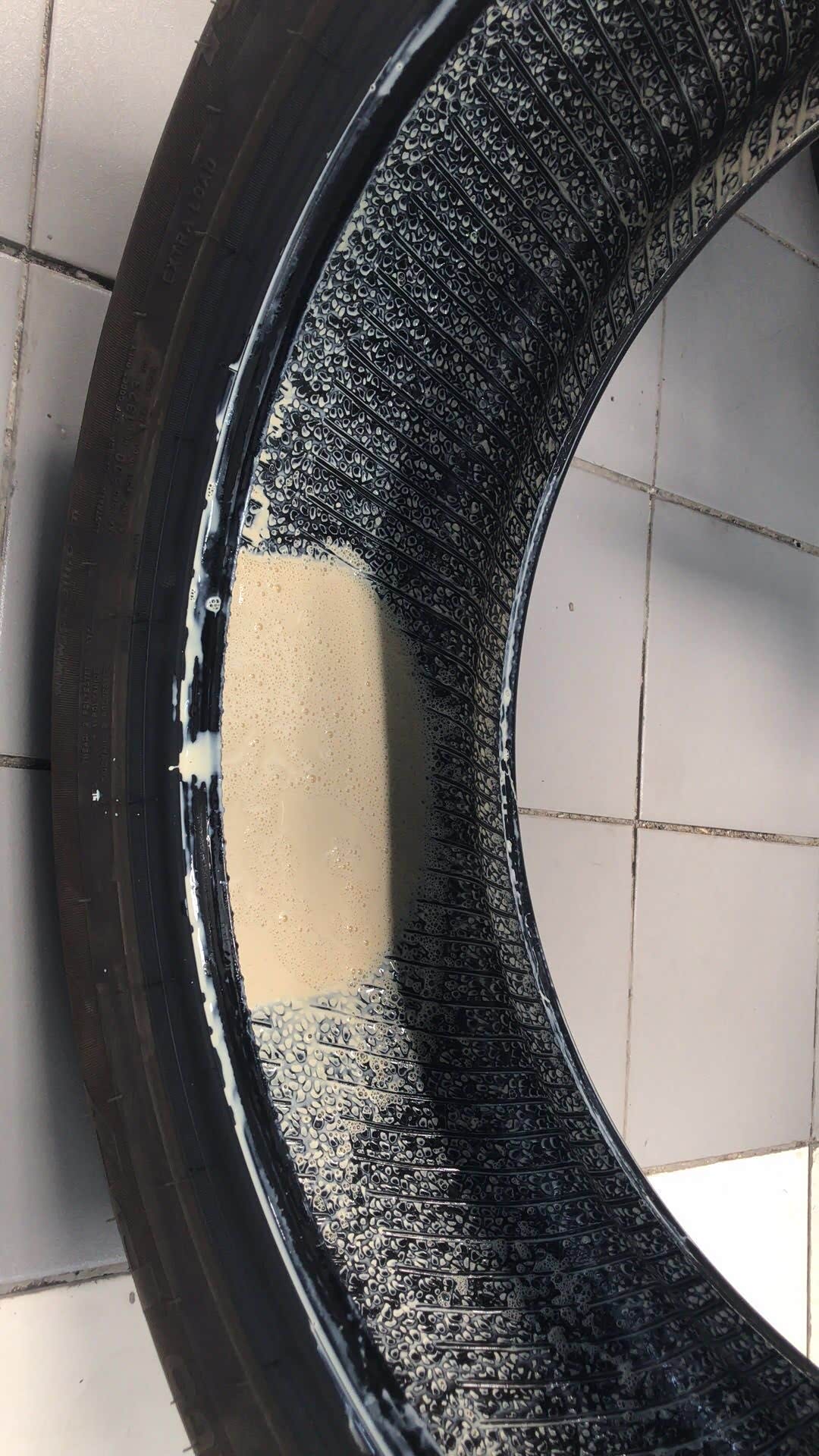 可真正头疼才刚刚开始,第二天咨询了朋友,才知道用一次补胎液轮胎就得废(主要是腐蚀),特别是有胎压传感器的车辆,还会损坏传感器,逐渐凝固后车轮动平衡也会受影响!