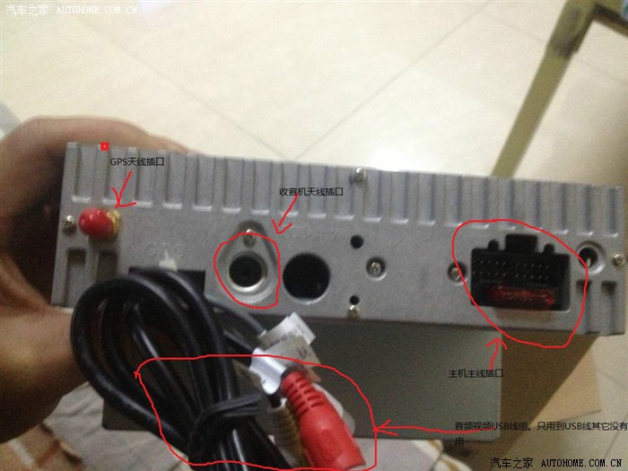 下面把导航主线插头,GPS插头。收音机天线插头都插到导航后面相应的插口里。(主要USB线没有用了,也就是说原车USB没有用了)