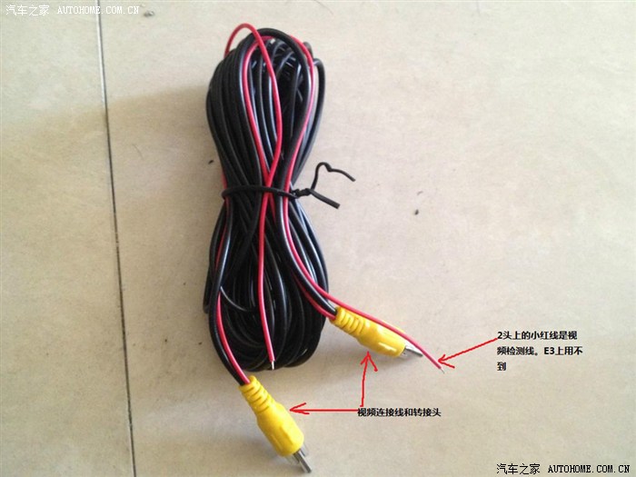 4 视频连接线有4M长(连接主机线和摄像头的视频线)头两边的短红线应该是倒车检测线(E3用不到)