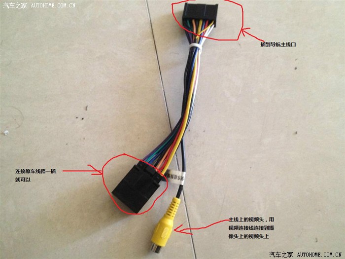 3 主机连接主线路。黄头是和倒车摄像头视频连接插头
