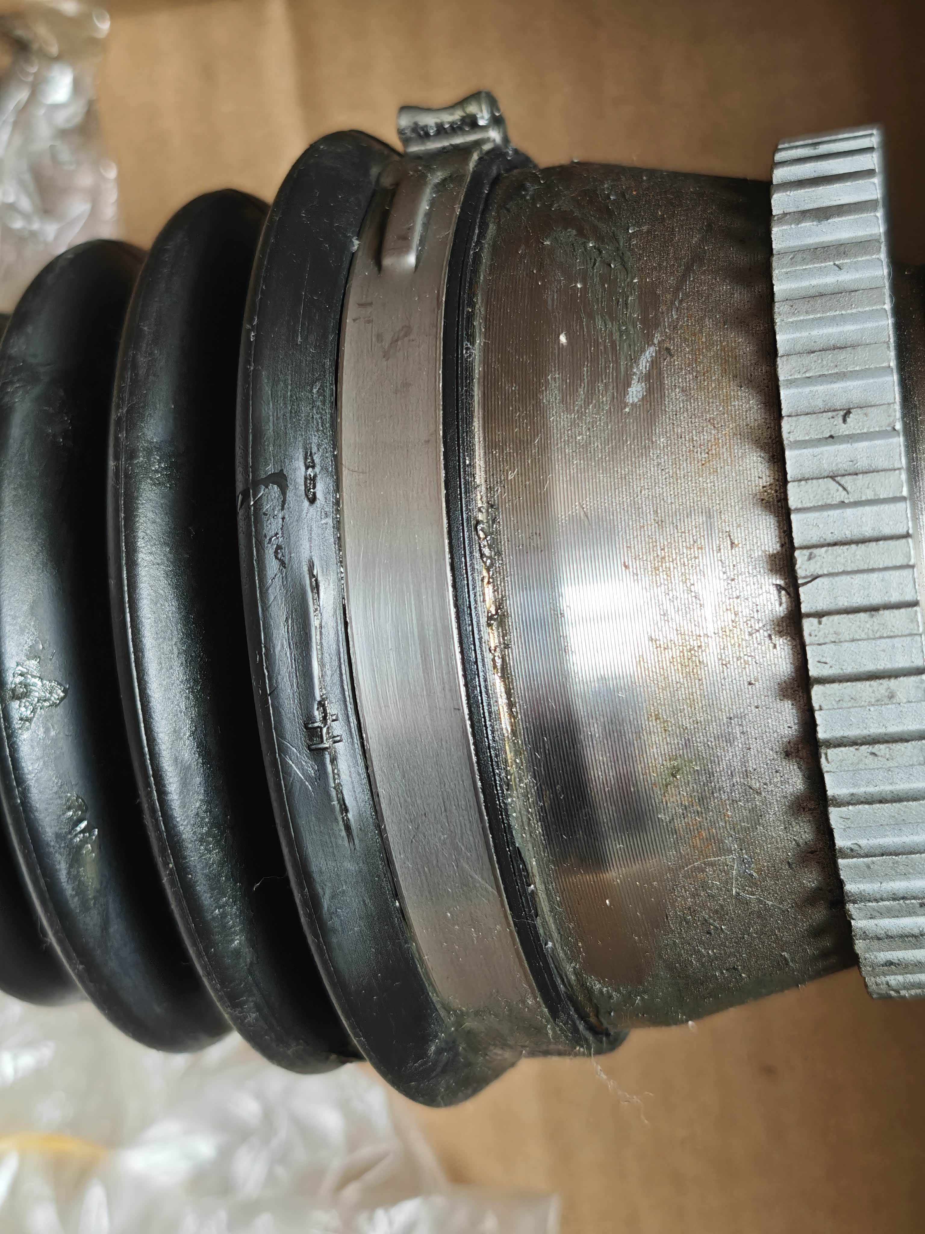 很多老车主建议是,换个球笼套即可。但吉利售后官方说法说是官方只有半轴可以购买,没有单独球笼套购买,整个半轴绍兴费用大概1200左右,可能其他市区有差异。 这个破损地方及痕迹,我始终是无法认可说是外力导致的。大家可以看第一张图片,拆下来后拍的比较清晰,这个刚好在一个字母上,而且有两个口子,收集到网上其他车主的相同情况,个人觉得很可能铸模或脱膜的时候就有问题了,但我也没证据。起码在他们认定一定是外力导致的,我是无法接受的。