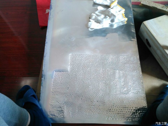 决定对折增加厚度,但这铝皮是光面的没消音效果于是自己处理做消音消音效果!