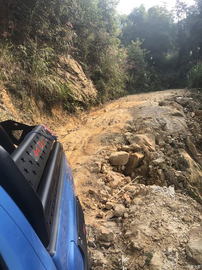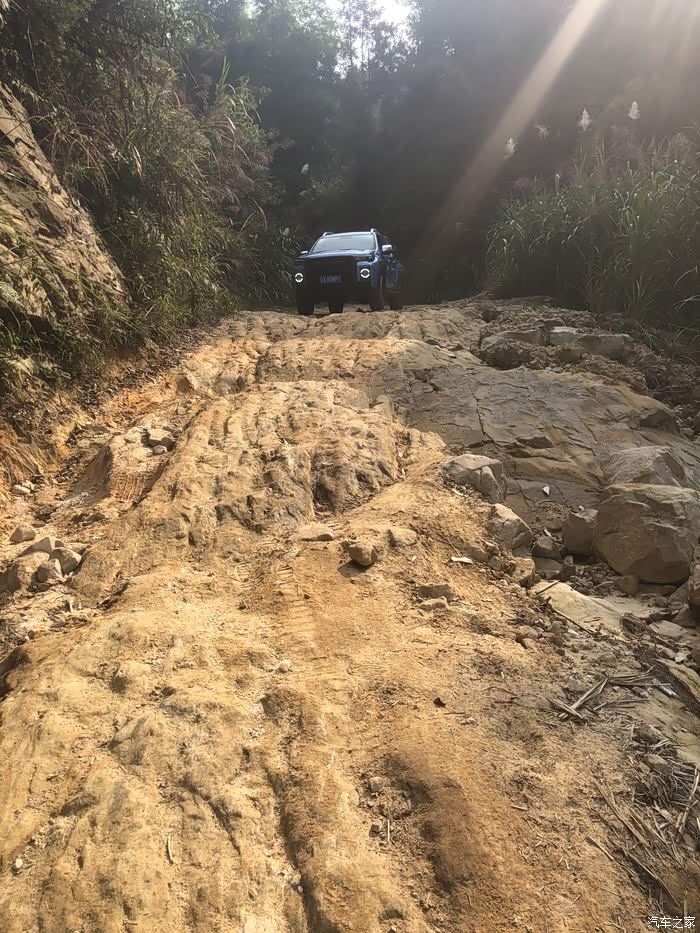 以为下陡坡等我时候会很陡或者打滑等情况,同行的伙伴下车给我看路,照片还是拍不出路面的惊险,幸运的是轻松加愉快的通过,这波操作试出了车辆的减震效果杠杠的,不会抖的脑水疼,乘坐感完全可以接受。