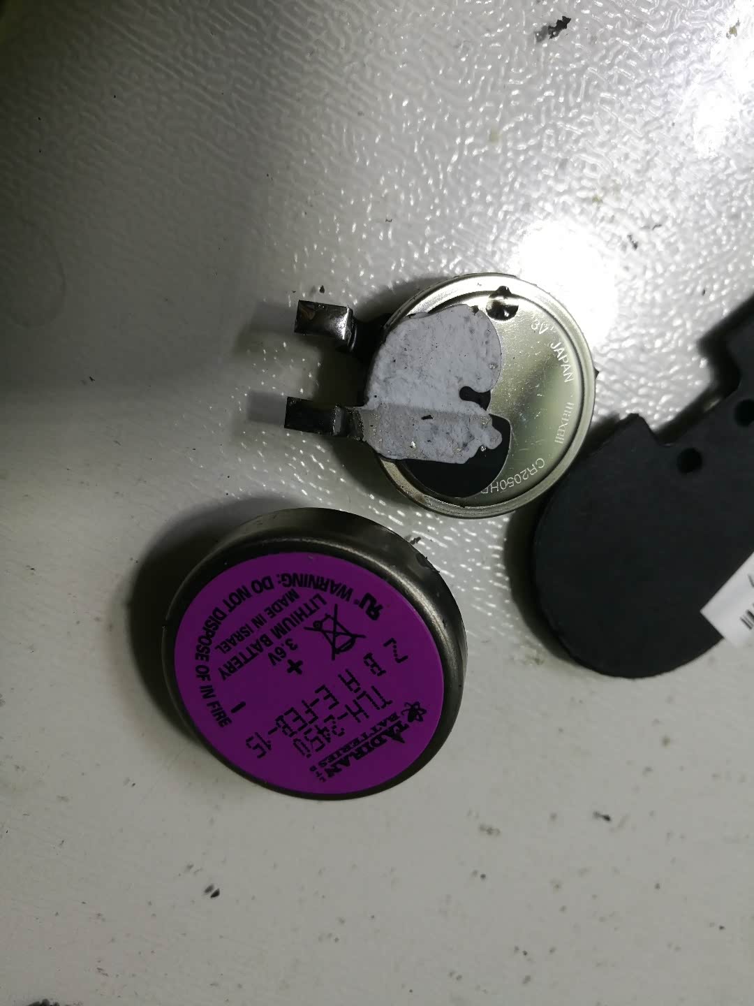 后来在闲鱼撸了几个二手伟力通用了三年左右的传感器,自己买了2477点电池换上,今天去轮胎店把坏的传感器换出来,回家拆开发现17年用的竟然是2050的万胜电池,这特么能有多少电量?难怪才用两年就无电了,拆下的电池万用表测量电压只有1.3V左右了。而我买的15年的传感器,用的2450电池,电压还在3.6V。