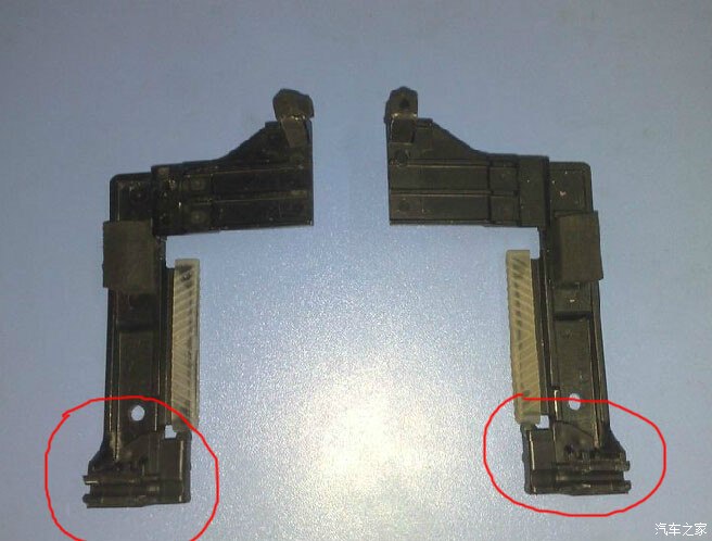 红圈处原来是卡住导水槽的,掉下来后天窗打开不到最大会卡到这两个,而且红圈处这两个卡槽还会和这个不知道叫什么东东的分离开(我原来就直接按回去,开天窗后还是会分开 这里走了不少弯路 装好后又重新拆下来然后买了一瓶502胶水 胶好后就不会掉了)然后再把导水槽按压到图上红圈处,这里算是修好了 ,然后就是开关不对应了,在关的位置时天窗是下沉的 ,开关在上翘的位置时天窗是开了一半的,而且开关关的时候天窗关到了又弹开了,像是启动防夹功能似的,总之关不上,心想着肯定是天窗电机的齿轮跳齿了 导致开关不对应,却不知道电机在哪,后来想想电机那么大 应该只有顶灯里面才会装电机,果断拆