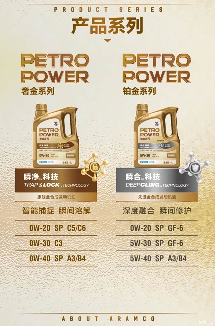 近期沙特阿美联合旗下胜牌子公司推出了两款系列产品,沙特阿美PETROPOWER奢金和铂金,奢金包括0W-20 C6、0W-30 C3和0W-40 A3B4三款产品,铂金有0W-20 GF-6、5W-30 GF-6和5W-40 A3B4三款产品,今天就一起看一下奢金系列0W40这款产品,它的各项指标如何!