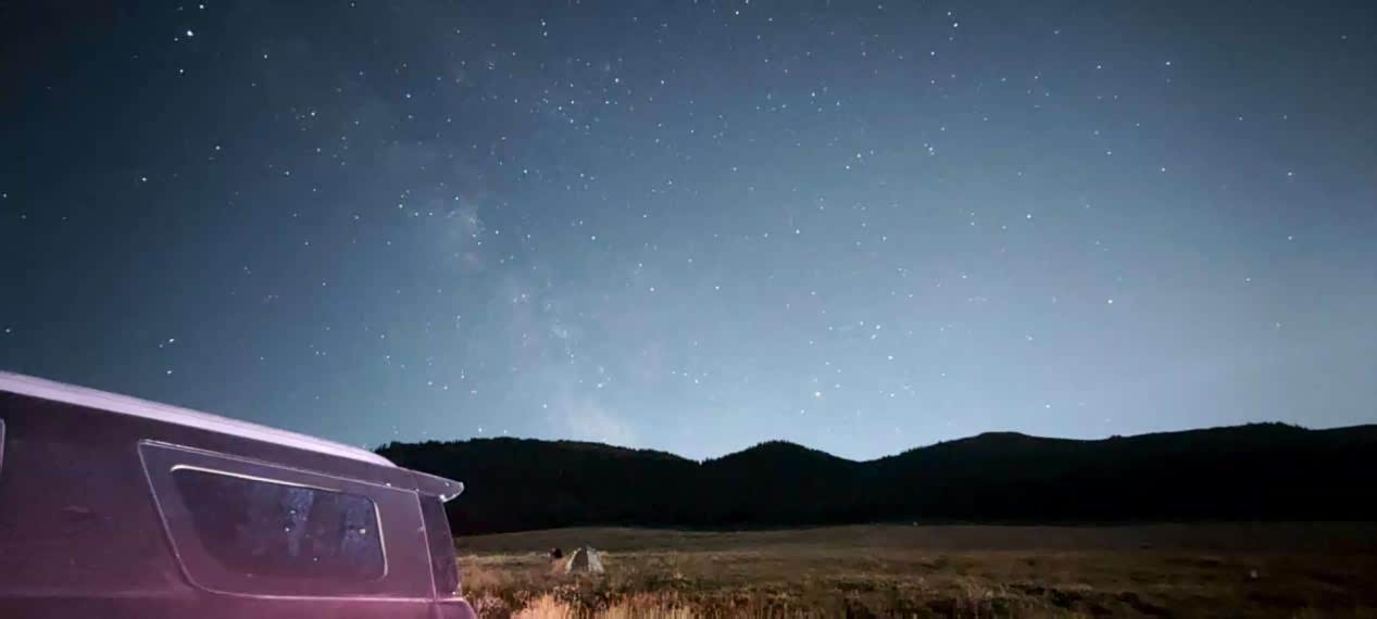 从山顶下来已十一点多,松树头停车场人较多,我们开着哈弗 H5 往前一段到金花紫卉停车场休息。找了个安静的地方,开始收拾休息。新H5的空间太给力了,把后排座椅放倒,就是一张 “两米” 大床,玩累了的我们躺进去,舒服又宽敞。旁边有好多搭帐篷的,我们庆幸能直接睡车里,不冷不热,要知道赛里木湖的晚上还是挺冷的。收拾完还能透过大天窗看星星,这天窗没白装,哈弗 H5 给了我们一个舒适的休息空间,真是快乐的一天。
