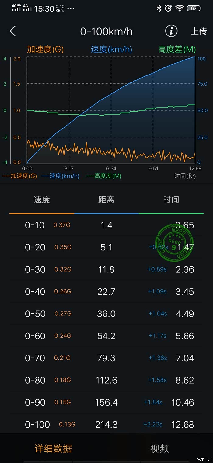 从破百的数据分析fast外挂一阶段相比原厂提升了2.52秒,这的确是很大提升,接下来我们将从加速G值以及数据流来分析。